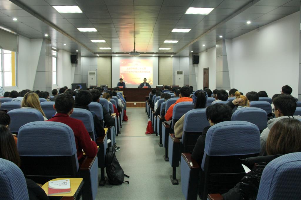 12月9日下午,土建学院第二十七期入党积极分子培训班在J15-219报告厅正式开班,学院党委副书记(主持工作)宋西路、党委干事王贝贝及118名入党积极分子参加了开班仪式。