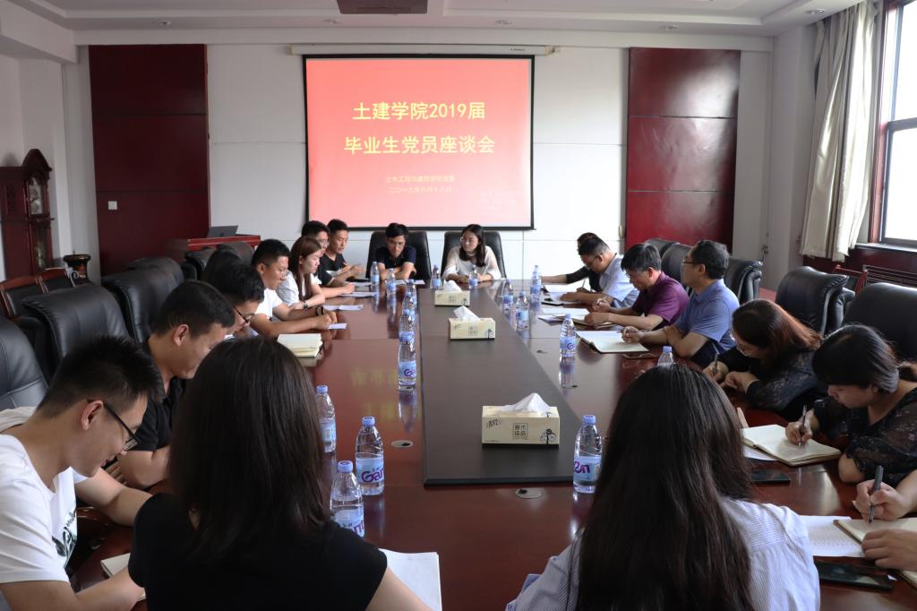 6月18日,土建学院在J15-316会议室举办了2019届毕业生党员座谈会,共话母校发展、共叙师生情谊。学院党委副书记(主持工作)宋西路、院长王崇革、副院长张宪堂、团委书记于娜、辅导员刘晶、尚军、王贝贝及毕业生党员代表参加了此次座谈会,座谈会由宋西路主持。