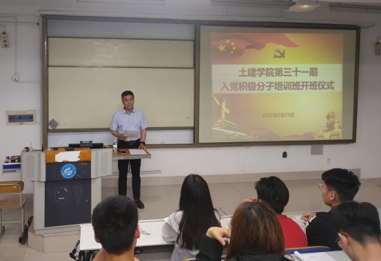 5月27日下午,土建学院第三十一期入党积极分子培训班在JS1-103正式开班,学院党委书记宋西路、党委干事沈娇及181名入党积极分子参加了开班仪式。