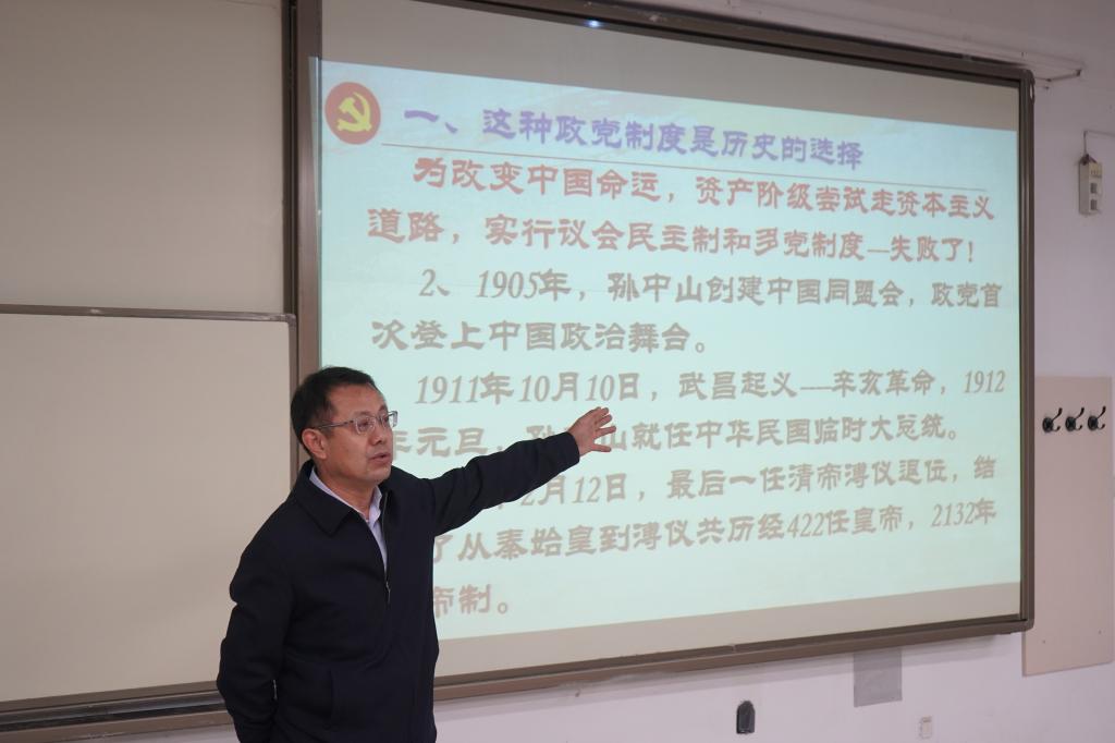 10月28日,统战部常务副部长王永君应邀在S1-103教室为土建学院、化工学院和交通学院党员发展对象培训班授课,本次党课的主题是“谈谈我国的政党制度”。
