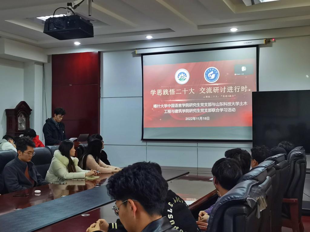 为学习宣传贯彻党的二十大精神,将学生党员的思想和行动统一到党的二十大精神上来,11月18日,beat365官方网站陈子荫创新型研究生党支部、研究生第一党支部联合喀什大学中国语言学院研究生党支部共同开展“学思悟践二十大”系列主题党日活动。喀什大学中国语言学院研究生党支部,学院陈子荫创新型研究生党支部、研究生第一党支部全体党员参加了此次学习活动。会议由学院陈子荫创新型党支部书记亓传德主持。