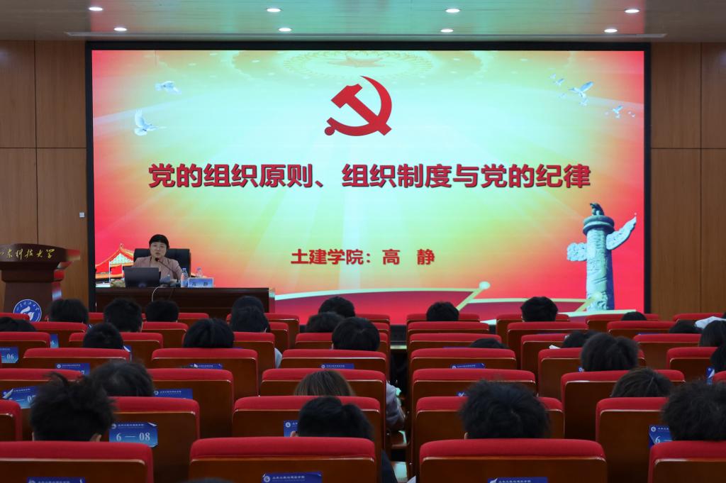 4月27日,土建学院党委副书记、副院长高静讲授《党的纪律和组织原则》主题党课。她详细阐述了民主集中制这一党的根本组织原则和领导制度,包括其内涵、重要性、基本原则和运行机制,以及如何在实践中加以贯彻;同时全面介绍了党的纪律,还通过具体案例深入分析违反纪律的后果,指出组织原则与纪律两者相辅相成,共同为保障党的先进性和纯洁性发挥作用。她激励学员们要将所学所悟转化为实际行动,以更高标准严格要求自己,要持续筑牢信仰根基、锤炼过硬本领,矢志践行党的宗旨,以实干担当为党旗增辉,在新时代书写青春奋斗篇章。