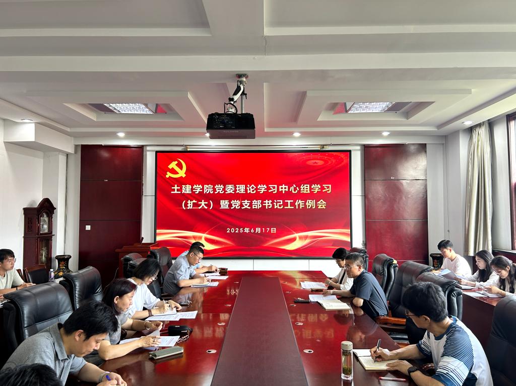 6月17日,土建学院党委召开党委理论学习中心组(扩大)学习暨党支部书记工作例会。学院领导班子成员、各党支部书记参会,会议由学院党委书记宋西路主持。