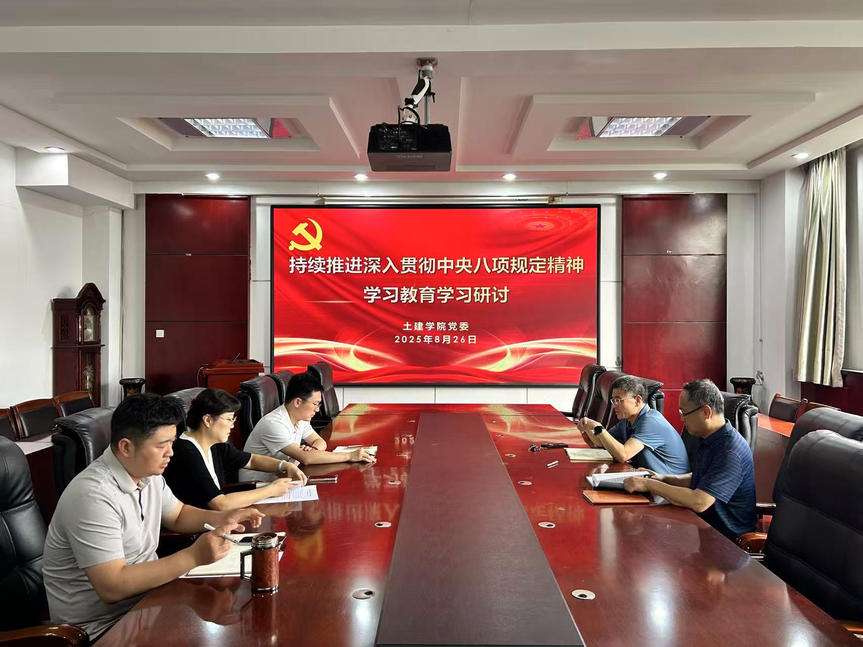 8月26日,土建学院党委开展持续推进深入贯彻中央八项规定精神学习教育学习研讨,深入学习贯彻习近平总书记关于加强党的作风建设的重要论述和中央八项规定及其实施细则精神,通过交流互鉴进一步深化思想认识、强化行动自觉,推动学院上下以更严标准、更实举措贯彻落实中央八项规定精神,持续巩固风清气正的政治生态。学院党委书记宋西路主持会议,在家领导班子成员参加会议。