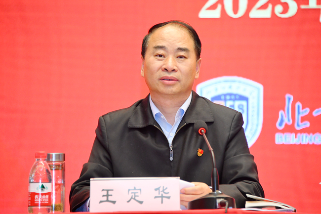 王定华对学校开展主题教育进行全面动员部署。他指出,在全党深入开展学习贯彻习近平新时代中国特色社会主义思想主题教育,是党中央为全面贯彻党的二十大精神、动员全党同志为完成党的中心任务而团结奋斗所作的重大部署,是深入推进新时代党的建设新的伟大工程的重大部署。4月3日,习近平总书记在中央主题教育工作会议上的重要讲话,从新时代新征程党和国家事业发展全局的战略高度,深刻阐述了开展主题教育的重大意义和目标要求,为全党开展主题教育作了全面动员、全面部署,是一篇马克思主义纲领性文献,是开展主题教育的根本遵循,我们必须认真学习领会、深入贯彻落实。4月7日,教育部召开学习贯彻习近平新时代中国特色社会主义思想主题教育动员部署会。教育部党组书记、部长、部主题教育领导小组组长怀进鹏作动员讲话,对非中管直属高校开展主题教育提出了具体要求。此次主题教育自上而下分两批进行,高校参加第一批,既体现了党中央对高校系统的高度重视,也是一种鞭策和鼓励。北外作为教育部直属高校,必须自觉强化示范引领作用,在不折不扣完成规定动作上当标杆,在彰显教育特色、体现教育贡献上作表率,切实将广大干部师生的思想和行动统一到习近平总书记重要讲话精神和党中央决策部署上来,凝心聚力推动学校各项事业平稳较快高质量发展。