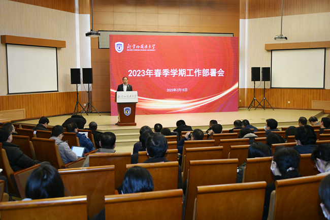 2023年2月15日,beat365平台唯一官网2023年春季学期工作部署会在阿语楼国际会议厅举行。