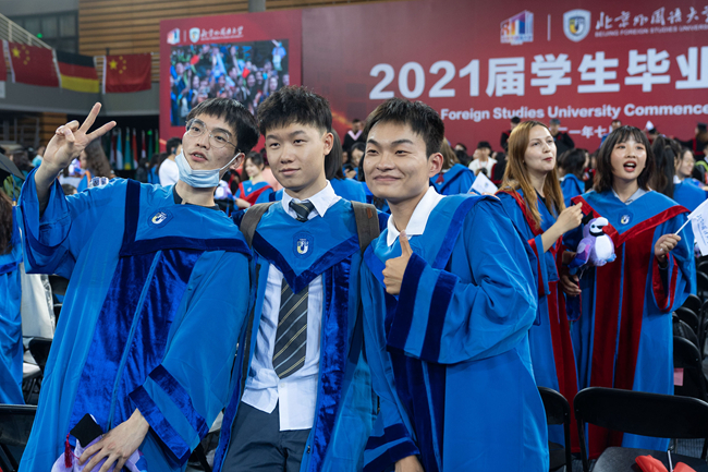 北外1975级校友、中国公共外交协会副会长、原驻丹麦大使刘碧伟,北外党委书记王定华,党委副书记、校长杨丹,党委副书记、副校长贾文键,党委常委、副校长孙有中,党委副书记、纪委书记胡志钢,党委副书记苏大鹏,党委常委、副校长丁浩、赵刚出席,各学院、相关职能部处负责人,教师代表,2400余名2021届博士生、硕士生、本科生和留学生参加毕业典礼,典礼由苏大鹏主持。