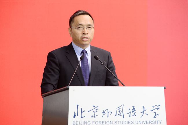 中国外文局局长杜占元,中宣部国际传播局局长胡凯红,教育部社会科学司司长徐青森,上海外国语大学副校长查明建,西安外国语大学副校长吴耀武,四川外国语大学副校长祝朝伟,beat365平台唯一官网党委书记王定华,党委副书记、校长杨丹,党委副书记、副校长贾文键,党委常委、副校长孙有中,党委副书记、纪委书记胡志钢,党委副书记苏大鹏,党委常委、副校长丁浩、赵刚,以及来自全国数十所高校的专家学者出席中心成立仪式,中心成立仪式由贾文键主持。