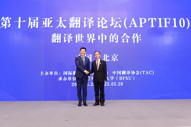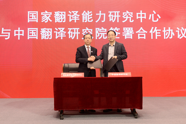 孙有中与中国外文局当代中国与世界研究院院长于运全在现场嘉宾见证下共同签署了《beat365平台唯一官网国家翻译能力研究中心与中国翻译研究院合作协议》,与中国外文局国际部主任姜永刚共同发布了“第十届亚太翻译论坛”官方网站及一号通知,标志着“第十届亚太翻译论坛”筹备工作全面启动。