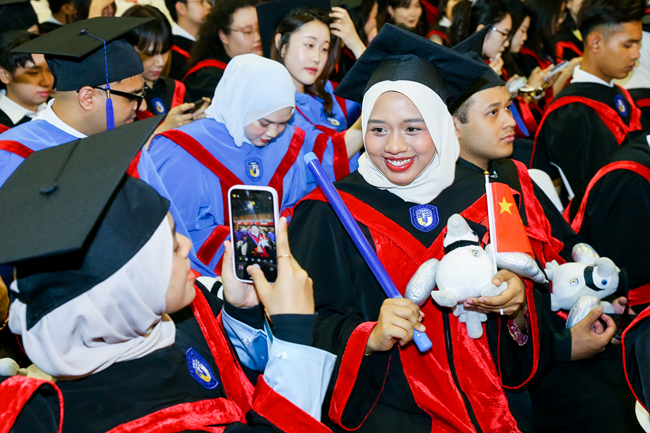 此次毕业典礼全程网络直播。马来西亚驻华使馆副馆长努尔法利纳·默罕默德·阿兹米、教育参赞默罕默德·沙烈胡丁·穆罕默德·迪利夫,埃塞俄比亚驻华大使馆三等秘书拉特召尔·那哈勒·里尔,北外各学院、相关职能部处负责人,教师代表,2800余名2024届本科生、研究生、留学生参加毕业典礼。