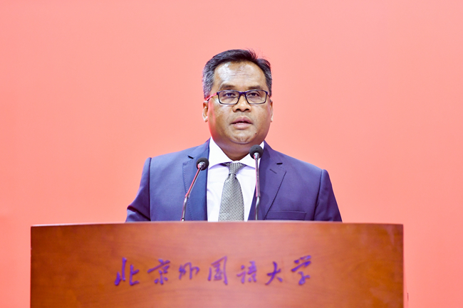 诺曼回顾了中马友好交流的百年历史,强调北外在马中教育交流中承担着十分重要的联接作用,同时邀请马来语专业学生在读期间前往马来西亚高校交换学习,领悟马来文化。他表示,当前世界充满挑战,需要拥有“卓越灵魂与完美品质”的优秀人才,这也与中国的“人类命运共同体”理念不谋而合。希望北外学子可以成为为全球可持续发展作出贡献的优秀人才。