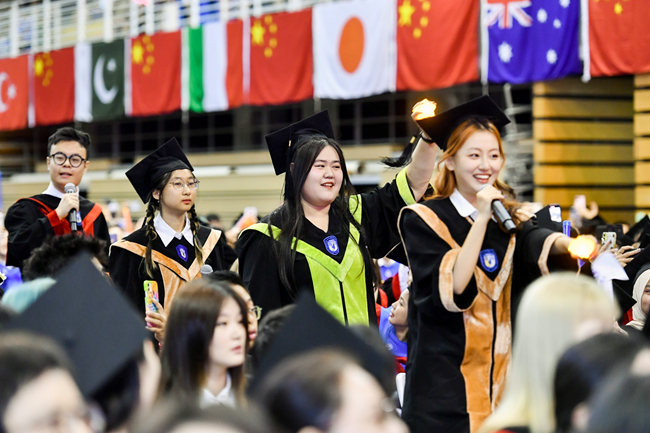 典礼最后,在场师生挥舞着手中的国旗和校旗齐唱校歌,“人民需要我们到哪里,我们就到哪里”的歌声在典礼现场久久回荡,激励着全体毕业生满怀信心、昂首前行。随后同学们带来的毕业歌曲串烧点燃全场,毕业典礼在歌曲悠扬的旋律中落下帷幕。