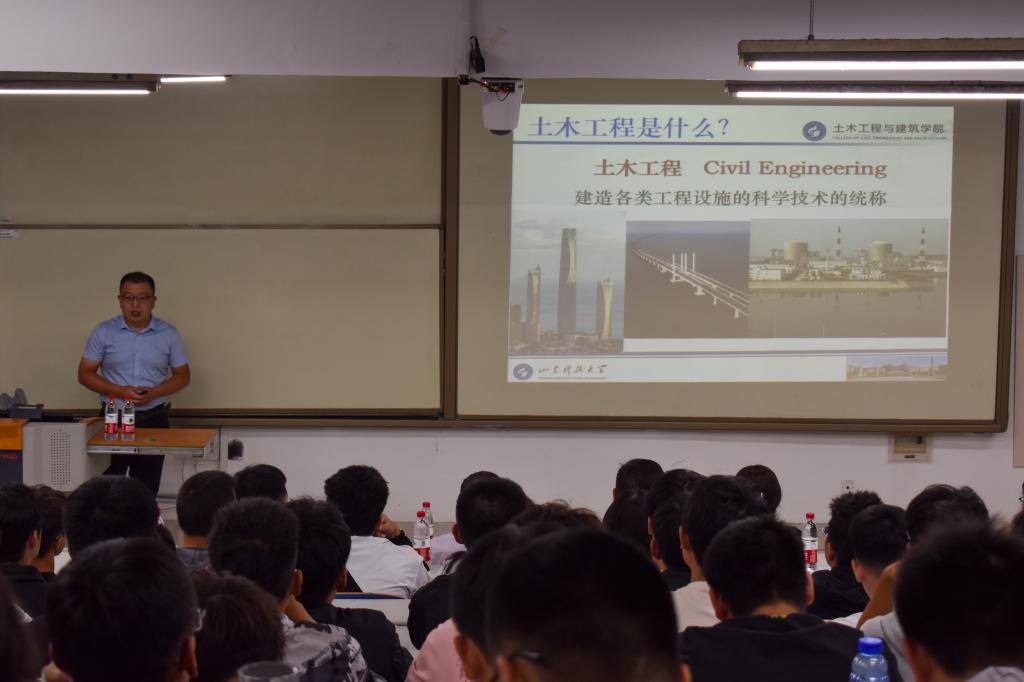 为帮助新生系统地了解所学专业,走好成长成才的第一步,尽快适应大学新生活,近日,土建学院各系所分别于J15学院楼与S1教学楼举行专业介绍会。会议面向土建学院2022届全体新生,由系所主任和骨干老师进行介绍,院长王崇革、学院党委副书记高静和副院长李朋出席会议。