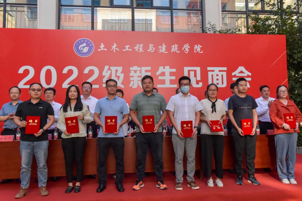 院长王崇革宣读了《关于聘任土建学院2022级新生班主任的决定》,同时领导班子为新生班主任颁发聘书。
