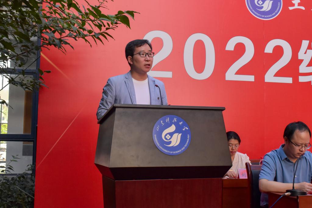 学院教师代表崔伟伟表示:自己将和学院的全体教师一起,深耕学科和专业内涵式发展,践行教书育人的初心使命,修身治学,树木树人。他嘱咐新生要心怀祖国、明德立志、逐梦前行。