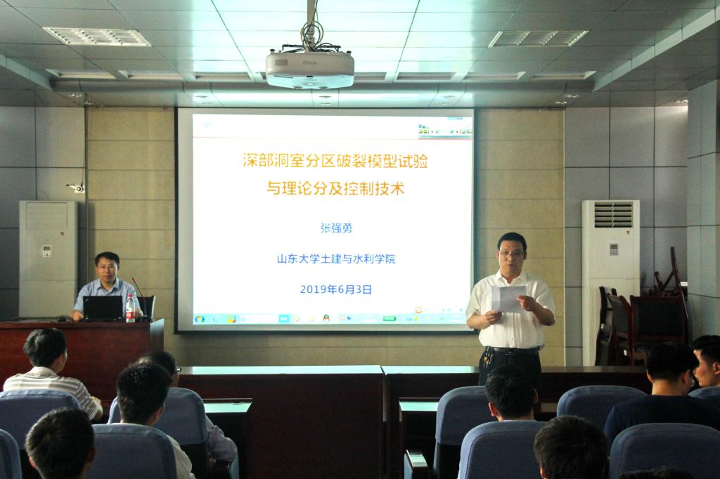 6月3日,土建学院邀请到泰山学者特聘专家、教育部新世纪优秀人才支持计划获得者、山东大学土建与水利学院副院长张强勇于土建楼219报告厅作报告,学院副院长张宪堂主持了本期名家讲坛。报告以“深部洞室分区破裂模型试验与理论分析及控制技术”为题,从深部洞室分区破裂模型及工程应用等方面展开讲解。