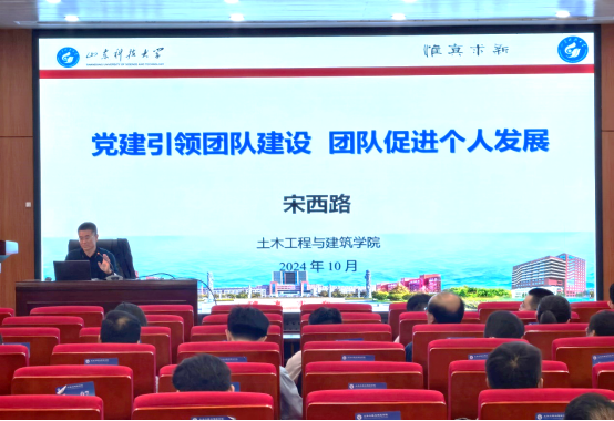 为认真学习贯彻党的二十大精神,落实立德树人根本任务,根据《beat365官方网站师德专题教育实施方案》文件精神,结合学校教务处青年教师助课和青年教师教育教学导航计划文件精神要求,强化每一位青年教师的立德树人意识,着力提升学院青年教师的教育教学水平,10月10日,土建学院2024年“师德师风专题教育”系列讲座第二讲于J15-136报告厅举行。邀请到土建学院书记宋西路担任主讲。学院40岁以下和近三年入职青年教师参加了此次讲座,讲座由副院长杨旭旭主持。宋西路书记以“党建引领团队建设,团队促进个人发展”为主题,分别从党建引领对于团队建设的意义、团队对个人发展的作用来展开讲述,并以土建学院山晖团队为例,就上述问题与会青年教师进行了热烈的交流和讨论。