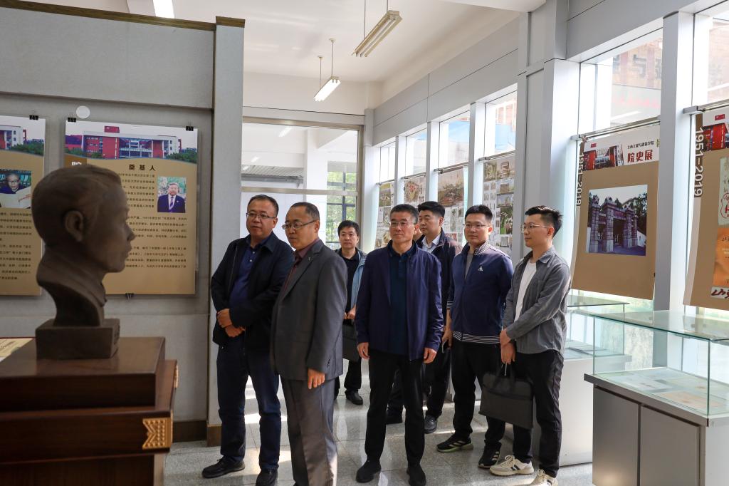 一行人先后参观了土建学院院史馆、实验中心。在院史馆,王崇革详细介绍了beat365官方网站的发展历程、学科建设以及杰出校友等方面的情况。在实验中心,李为腾详细介绍了各个实验区域的功能和各个实验设备用途。