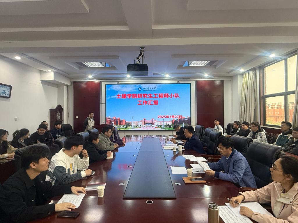 在学校第四次党代会召开之际,土建学院于2025年3月27日在J15-316会议室召开研究生工程师小队工作汇报会。会议由学院团委辅导员史卫平老师主持,副院长李为腾及各学科代表老师组成专家评审团,对15支小队的工作成果进行评比。各小队通过PPT展示团队在所研究方向的核心成果,重点围绕所依托的工程项目、已开展的工程实践、为企业解决的实际问题以及下一步拟开展的工作进行详细汇报。