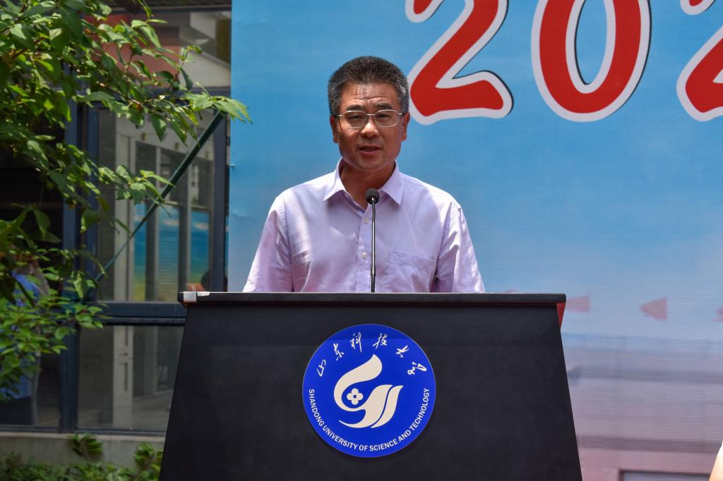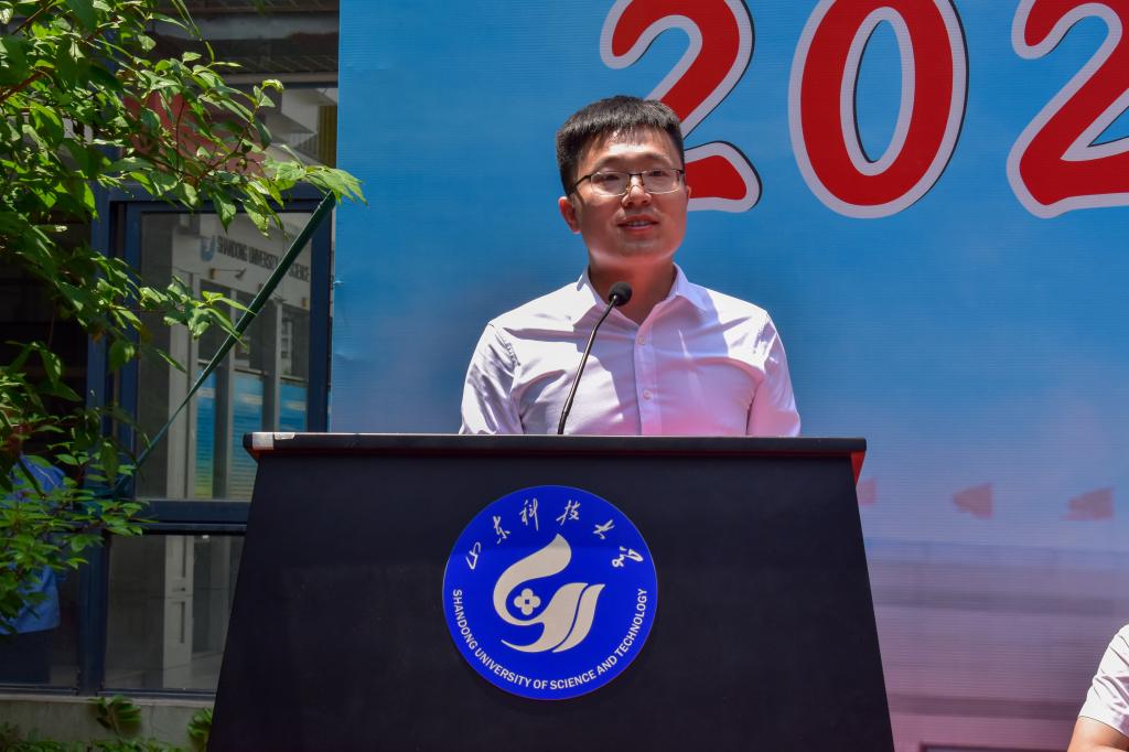 最后,院长王崇革向全体毕业生致辞,他向毕业生们圆满完成学业表示衷心的祝贺,向一路呵护同学们成长成才的老师们表示最崇高的敬意。临行之际,他赠言毕业生:一是志存高远,希望同学们立鸿鹄伟志、守报国丹心,让理想与伟大时代同向同行,把自己的小我融入祖国的大我、人民的大我之中;二是崇善明德,希望同学们用人格赢得成功路上的机遇良缘,要知感恩、懂宽容、会分享,严以律己,宽以待人。让诚实、正直、厚道、守信的优秀品质与同学们朝夕相处;三是笃行不怠,希望同学们在走出校门后,依然保持读书和研究的习惯,追知识之“光”,求真理之“是”,把阅读思考作为生活方式,让终身学习成为自觉追求。他祝愿毕业生们在自己的担当和奋斗中,把握人生的际遇和机缘,勇敢地追求属于自己的诗和远方,成就奋斗的人生、幸福的人生、卓越的人生。