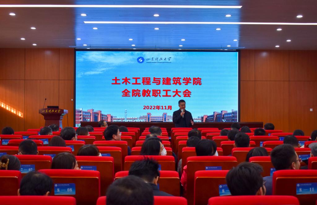 11月15日下午,土建学院在J15-136报告厅召开全院教职工大会,会议由学院党委书记宋西路主持,学院全体教职工参加会议。