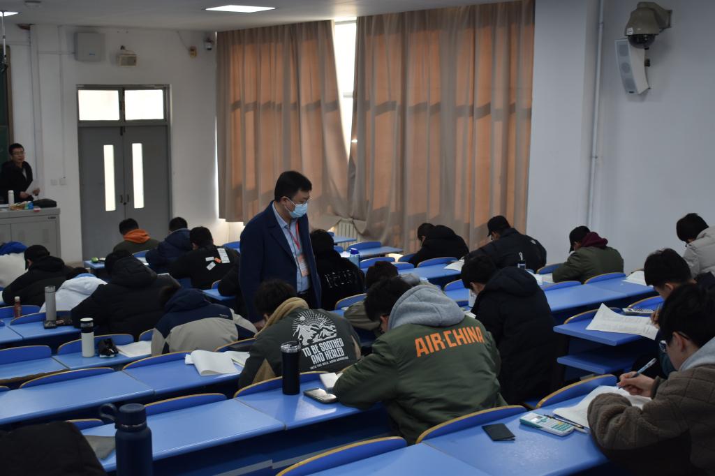 为进一步加强期末考试组织管理,严肃考风考纪,扎实推进学风工作,2月20日,学院党委书记宋西路带领学院领导班子成员、教学督导深入考场进行巡查。巡考期间,学院领导向监考老师详细了解考试工作组织实施情况,对考场秩序、监考老师履职、考生出勤、考试纪律和考场记录等方面进行检查,向没有考试任务的同学了解备考情况。从巡查现场看,各考场考试组织规范有序,监考人员认真履行监考职责,学生遵守考试纪律,考场秩序良好。