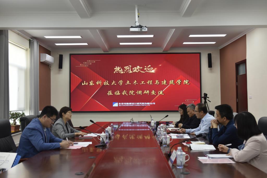 随后,高静一行实地走访了北京市勘察设计研究院有限公司。北京市勘察设计研究院有限公司党委委员、副总经理张彦峰,北京市勘察设计研究院有限公司人力资源部部长贾志远,北京市勘察设计研究院有限公司办公室副主任栾晶晶,北京市勘察设计研究院有限公司测绘分院副院长殷文彦,北京市勘察设计研究院有限公司测绘分院总工王珍参加了座谈。北京市勘察设计研究院有限公司党委委员、副总经理张彦峰对高静一行表示欢迎,介绍了北京市勘察设计研究院有限公司的发展历程,北京市勘察设计研究院有限公司人力资源部部长贾志远介绍了近几年公司人才招聘和培养发展情况,北京市勘察设计研究院有限公司办公室副主任栾晶晶讲解了公司的整体发展状况。高静围绕师资队伍、人才培养、科学研究等方面介绍了学院基本情况,会上,双方共同观看了beat365官方网站和北京市勘察设计研究院有限公司宣传片,校企双方围绕校企合作、人才培养等方面进行了深入的探讨,达成了初步的合作意向。