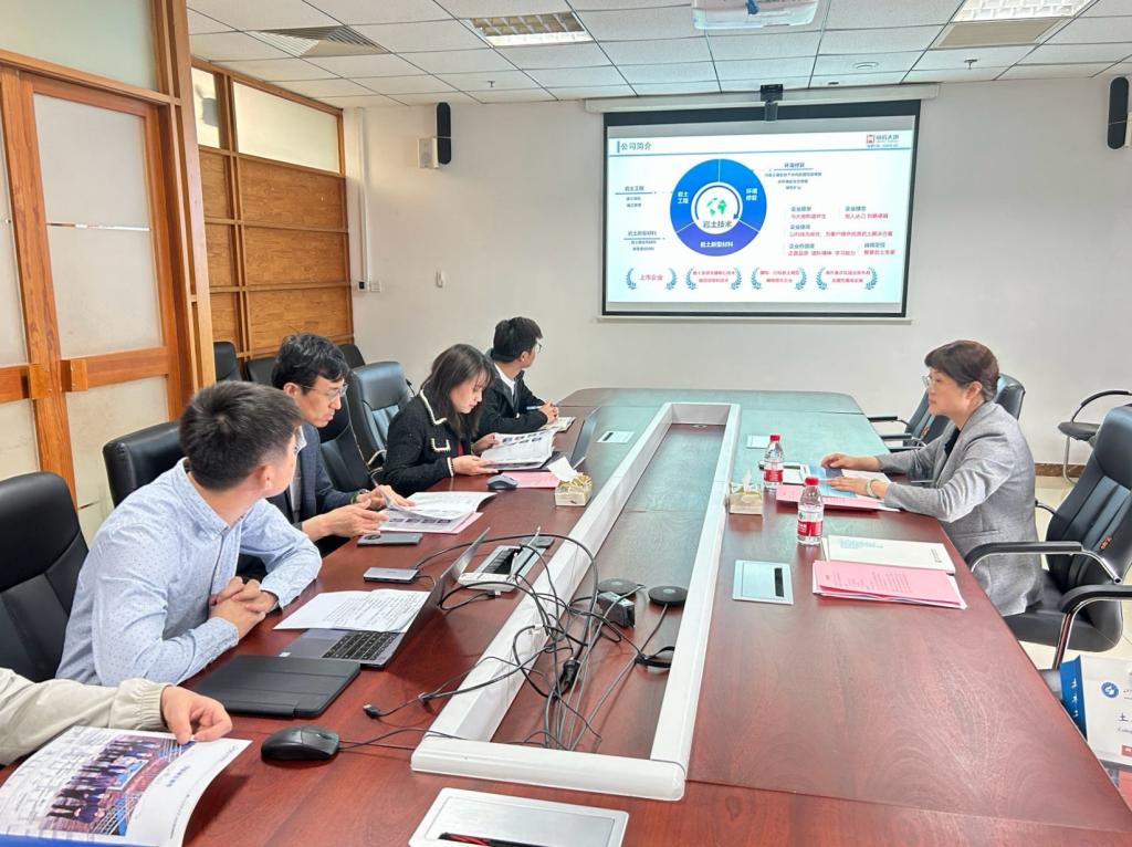 最后,高静一行实地走访了北京中岩大地科技股份有限公司。北京中岩大地科技股份有限公司副总经理刘光磊,北京中岩大地科技股份有限公司人力资源总监周思成,北京中岩大地科技股份有限公司研发中心副主任、校友宋伟杰参加了座谈。校企双方在校企合作、人才招聘、产教融合等方面进行了充分沟通。