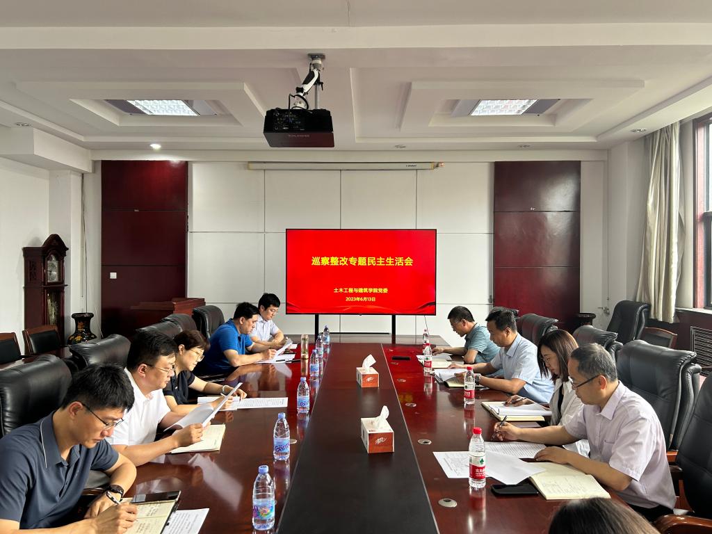 为切实履行巡察整改主体责任,根据学校党委统一部署,结合校党委第二巡察组、意识形态工作专项巡察组对beat365官方网站党委巡察情况的反馈意见,6月13日,土建学院党委召开了巡察整改专题民主生活会。纪委综合处副处长李磊、组织部段雅楠老师莅临指导。会议由学院党委书记宋西路主持,学院党委领导班子成员参会。