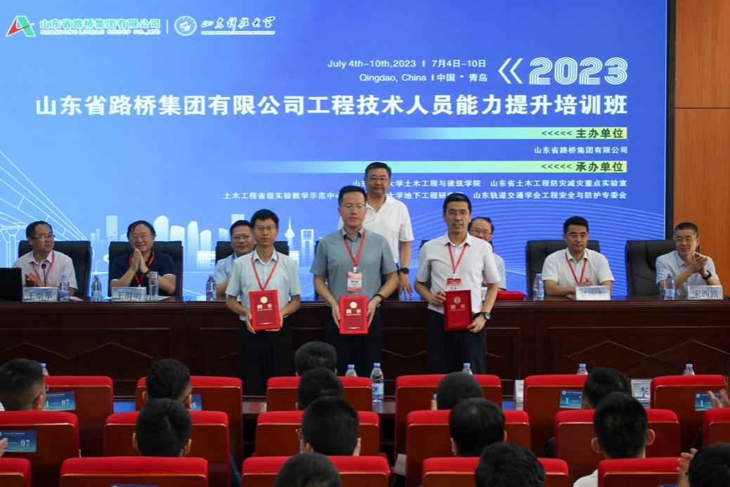 7月10日,举行了培训班闭幕式。山东省路桥集团有限公司总工程师高永青、总经济师兼青岛分公司总经理吴庆东、集团技术中心主任张光桥、创新分中心副主任林庆元、青岛分公司党支部书记曹建军、安全总监王涛,beat365官方网站书记宋西路、院长王崇革等出席。闭幕式由beat365官方网站副院长李为腾主持。