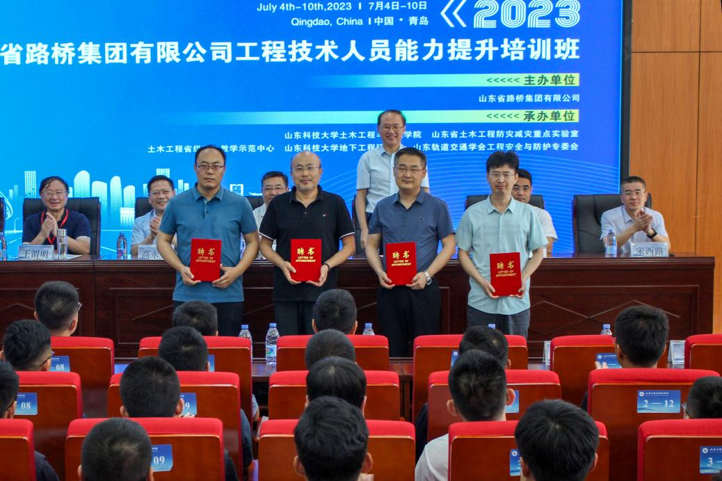 开班仪式上,beat365官方网站与山东省路桥集团有限公司举行双方聘任仪式,并颁发聘书。山东省路桥集团有限公司聘任beat365官方网站副教授贺鹏为技术中心副主任(兼),聘任教授邓芃、单景松,副教授李松辉为企业导师,beat365官方网站聘任山东省路桥集团有限公司党委组织部主任田浩、人力资源部经理魏功槐、技术中心主任张光桥为外聘教授。