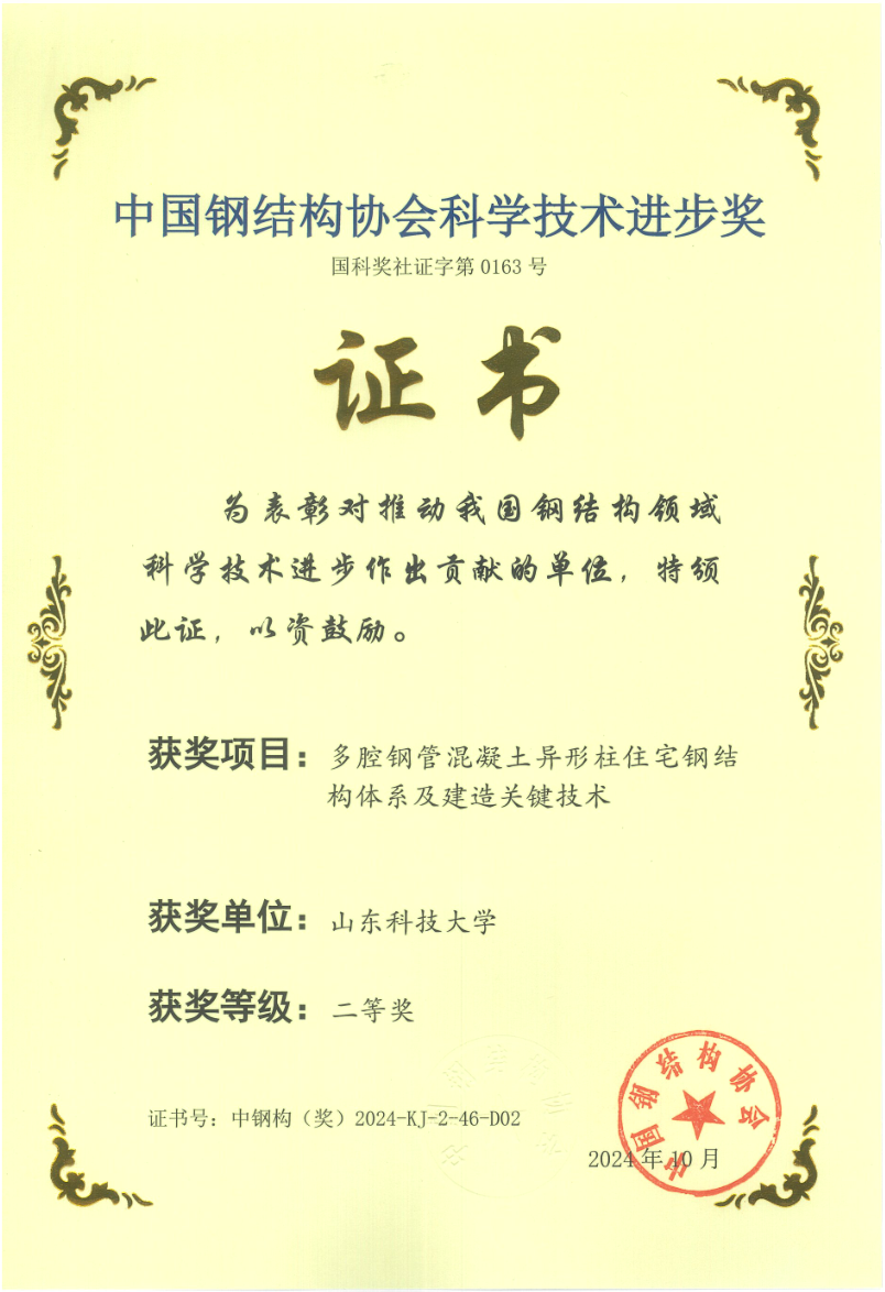 近日,中国钢结构协会成立40周年大会暨2024中国钢结构大会在北京隆重召开,会上揭晓了2024年度中国钢结构协会科学技术奖评选结果。beat365王来教授牵头的“多腔钢管混凝土异形柱住宅钢结构体系及建造关键技术”项目荣获科学技术进步奖二等奖(第二完成单位)。