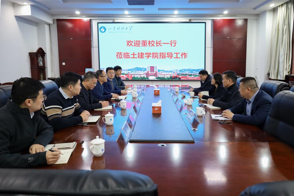 12月12日,校党委常委、副校长董海荣莅临学院调研指导,教务处处长樊建聪、研究生院院长韩作振、科技处副处长赵健陪同调研。土建学院党委书记宋西路、院长王崇革,副院长李为腾、杨旭旭、都浩、秦哲参加座谈。