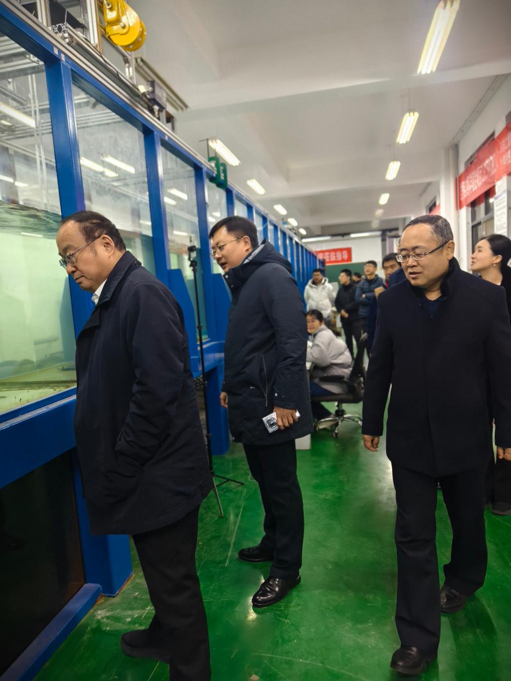 调研期间,张建民院士一行参观了土建学院院史馆、海洋土木工程实验室、岩土和结构实验中心。