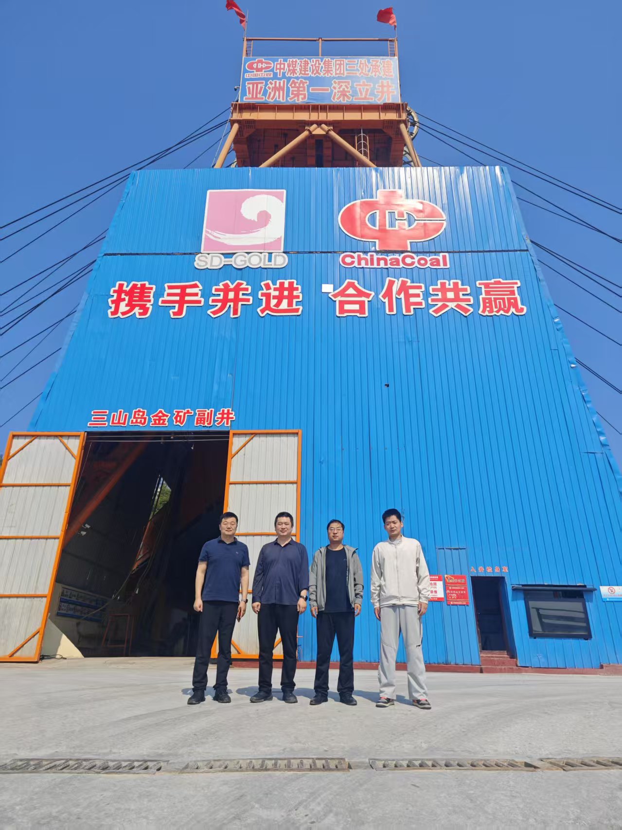 在项目现场,秦哲一行与三山岛金矿总工程师何顺斌、党支部书记李威、工程项目部经理况丹阳等人围绕立井施工中的关键技术难题、深井围岩控制及重大灾害防控等核心议题进行了深入交流。秦哲指出,学院将充分发挥科研与人才优势,持续聚焦深地科学技术研究,为“亚洲第一深立井”的安全高效建设提供坚实支撑。何顺斌总工对学院及山晖团队长期以来的科研支持表示感谢,并重点介绍了超深副井及盲服务井在建设过程中,面对复杂地质、高地温、高地压等世界级挑战所取得的一系列重大技术突破。工程项目部经理况丹阳表示,三山岛金矿将与beat365官方网站持续深化在超深竖井建设与安全运营领域的合作。
