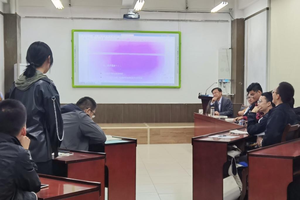 10月22日晚上,基建处处长吴正龙参加土木工程18-5班“考研就业那些事儿”主题班会,学院党委副书记兼副院长高静、学生工作办公室主任朱统汉、辅导员张翌陪同参加。据悉,该班级为吴正龙在领导干部深入基层联系学生活动中的对接班级。