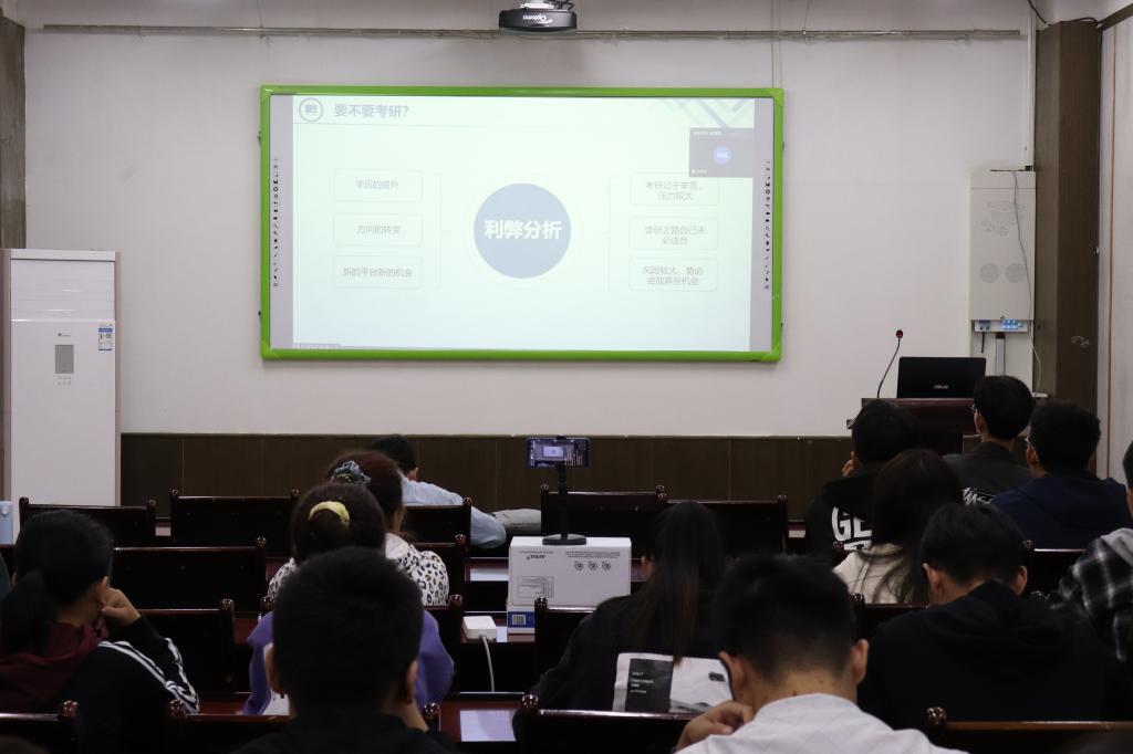 本次活动旨在分享考研经验、解答学生考研的问题与困惑,力求通过榜样的经验分享和引导力量,帮助18、19级在校生进一步明确专业学习目标和考研方向。