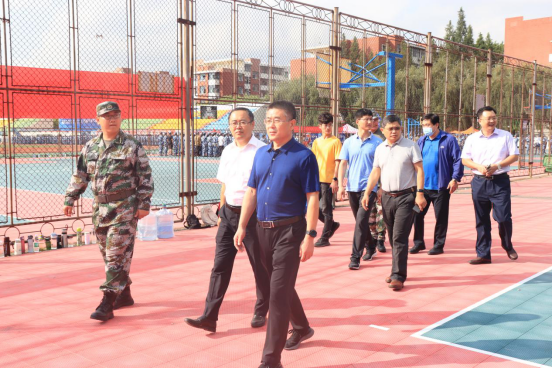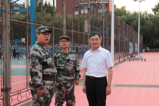 学校党委常委、副校长高建广到学院训练场地,驻足观看了土建五营的训练情况,并对今天的训练计划以及完成情况进行了详细的了解。土建学院党委书记宋西路、院长王崇革等学院领导班子到训练场地看望新生,对他们刻苦训练的精神给予了肯定,并鼓励新生们再接再厉,以饱满的热情迎接接下来的训练。