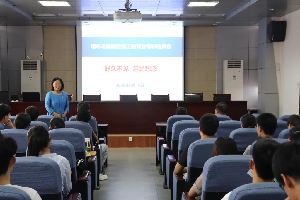 6月16日下午,土建学院在J15-219会议室举办了建筑环境与能源应用工程专业考研动员会。建环系主任王翠苹、副主任崔伟伟及刘玉峰、孙始财、张长兴、亓玉栋、宋桂梅、李慧敏等老师出席本次动员会。会议由王翠苹主持,学院17级建环专业本科生到场参加。