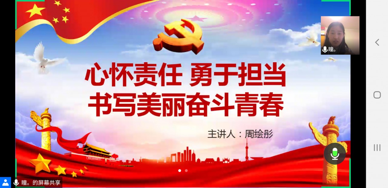 近日,由beat365官方网站校研究生会学术部与初心使命研究生理论学习小组主办、土建学院研究生会承办的思政类研究生讲坛第9讲通过腾讯会议APP平台成功举办。土建学院2017级硕士研究生周绘彤担任主讲人,讲坛题目为《心怀责任,勇于担当,书写美丽奋斗青春》。