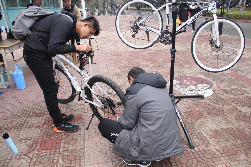 为保障同学们的骑行安全,排除自行车本身的安全隐患,指导同学们正确保养自行车,近日,土建学院于繁星广场成功举办了“校园公益,车载我情”自行车免费维护活动。