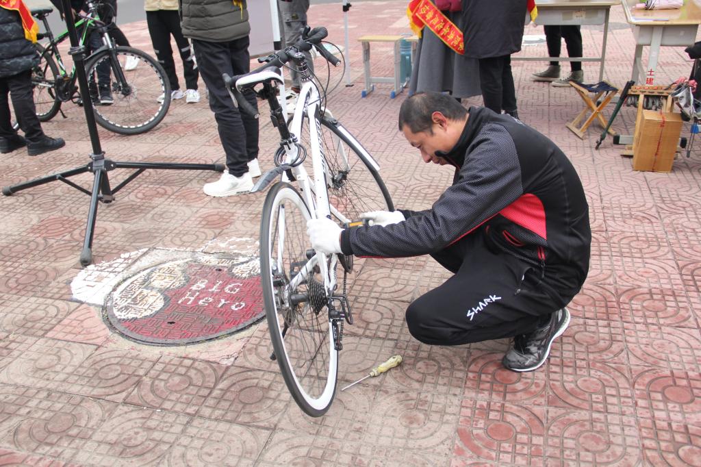 清晨,志愿者们早早地准备好修理工具,搭建修理工作棚,为今日的志愿活动做好准备工作。未几,便有同学陆陆续续地带着自行车前来修理。维修师傅和志愿者们仔细地检查自行车的每一部分,尤其是对链条、车轴以及变速器等容易造成安全隐患的部分格外细心排查。发现问题后,出手迅速,熟练解决。对于锈迹斑斑、保养欠缺的自行车,维修师傅则提出简单的保养方法,方便同学们日后自行维护。自行车修好之后,同学们的喜悦之情溢于言表,纷纷向维修师傅和志愿者们道谢。