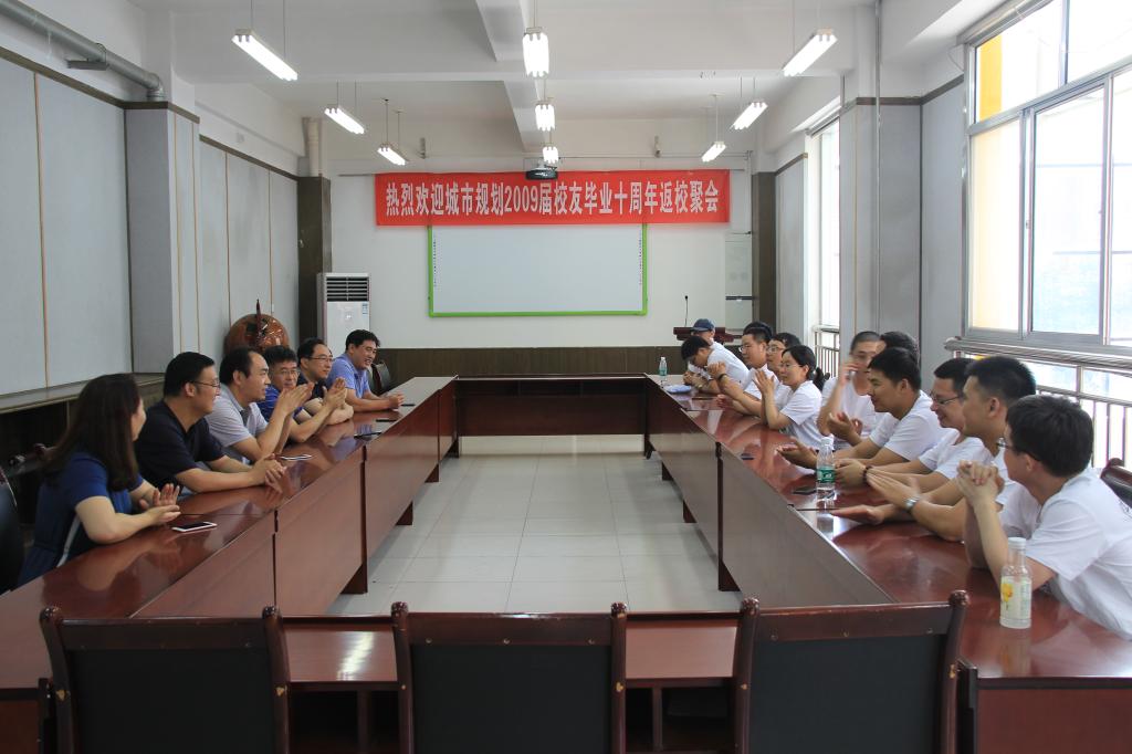 8月17日下午,土建学院城市规划2009届毕业生回访母校,举办毕业十周年返校座谈会。土建学院党委副书记(主持工作)宋西路,土建学院党委副书记、副院长郝亮,副院长张宪堂,团委书记于娜以及规划系主任代朋,规划系教师赵景伟参加了本次座谈会。