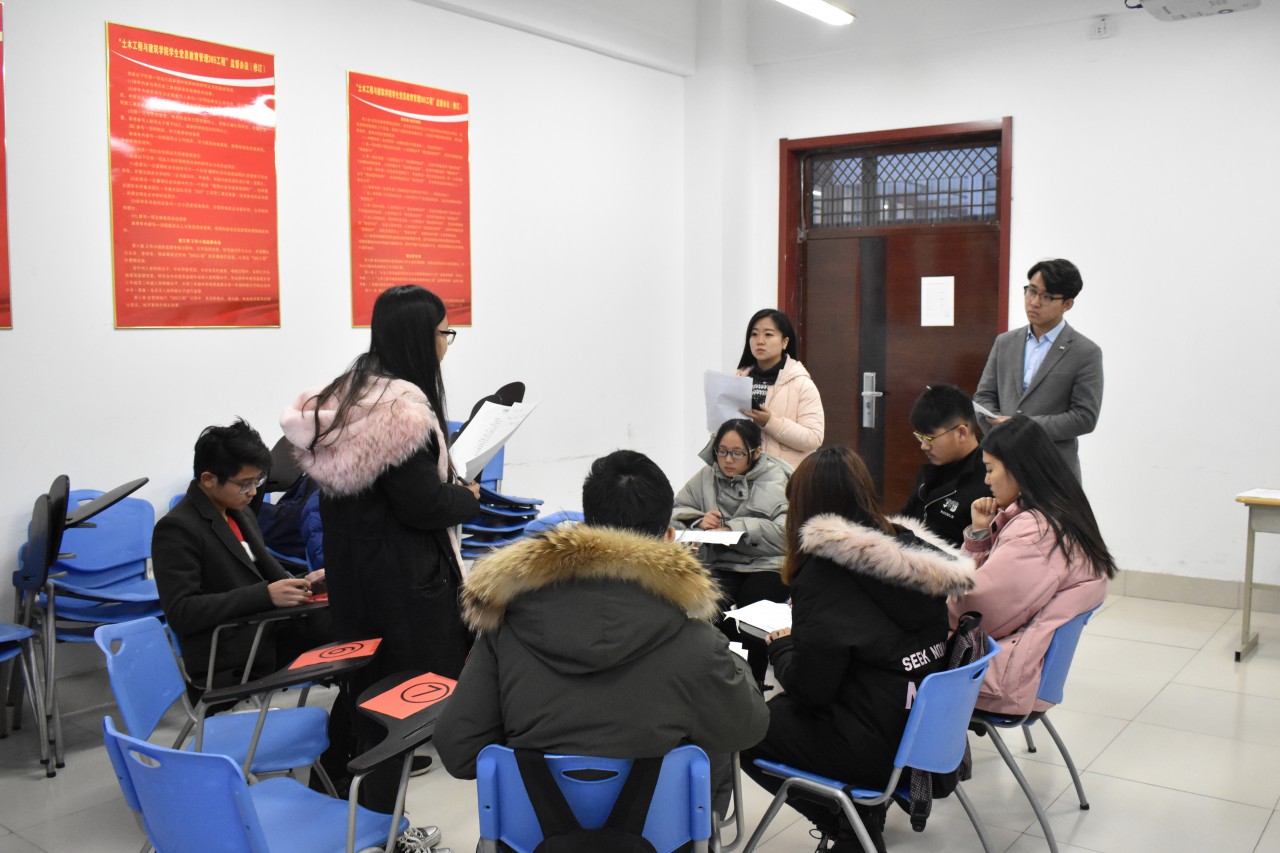 复赛共分为三个环节,第一环节于201房间进行,三位评委对参赛选手们的简历进行了细致的点评,就简历制作的技巧与方法与同学们进行了交流,并对简历中出现的问题一一给出了修正意见。 15 时30分,第二环节“无领导 小组讨论相关工作布置 会”于219房间开始,工作人员对参赛选手进行了分组,将60位 进入复赛的选手分为 6组。随后,李奕诺老师讲解了此次无领导小组面试的规则,并对同学们的疑问进行了详细地解答,强调了无领导小组讨论中应注意的事项。一切准备就绪后,正式 进入 第三环节——无领导 小组讨论 ,李 奕诺老师、邢一芳老师担任评委 。评委出题后,每个小组针对问题在限定的时间内展开了讨论,大家各抒己见,氛围热烈且充满活力;最终每个小组派一名代表来阐述该组的统一意见,并由评委进行最后的打分。