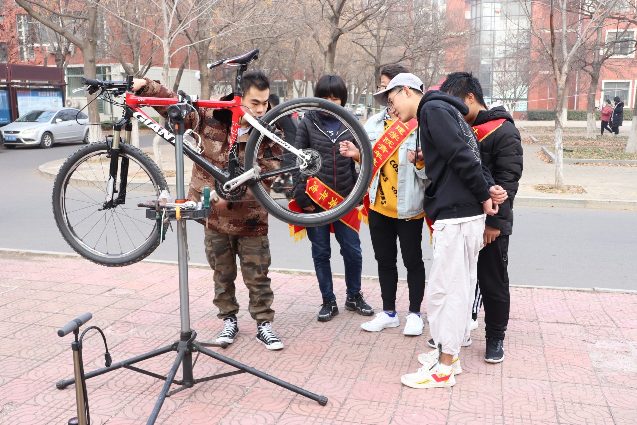 在大学里,自行车是最普遍的交通工具,但很多自行车在室外停放,许久的风吹雨淋之后早已锈迹斑斑,严重影响自行车使用寿命的同时还存在着安全隐患。为此,12月1日,土建学院青年志愿者协会于繁星广场举办了自行车免费维修活动,为全校师生的自行车提供义务维修服务,方便了广大师生。