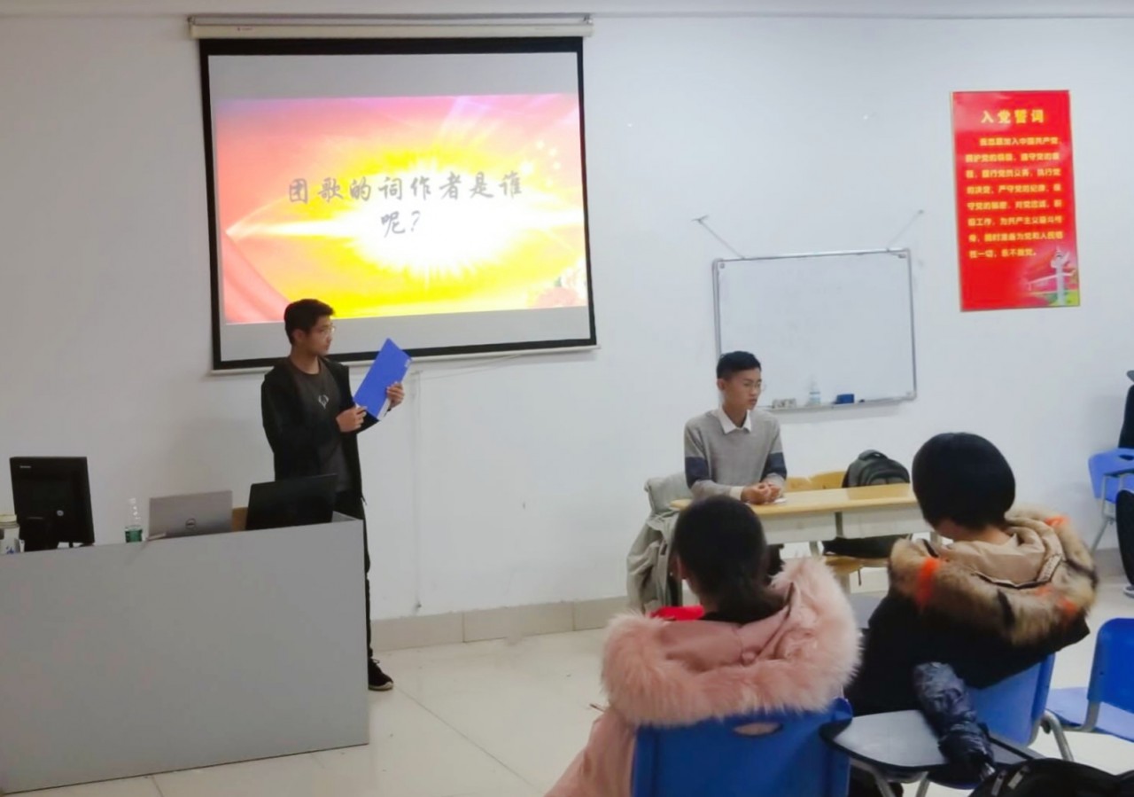 为深入学习贯彻习近平新时代中国特色社会主义思想和党的十九大精神,认真落实团十八大关于全面从严治团的部署要求,提高共青团组织建设科学化水平,进一步强化团员意识,根据团省委和校团委工作安排,近日,beat365官方网站团委在全院范围内组织各团支部集中开展了以团旗、团徽、团歌等共青团标志规范使用为主要内容的主题团日活动,对《中国共产主义青年团团旗、团徽、团歌制作使用管理规定》(中青发〔2018〕12号)进行深入学习。