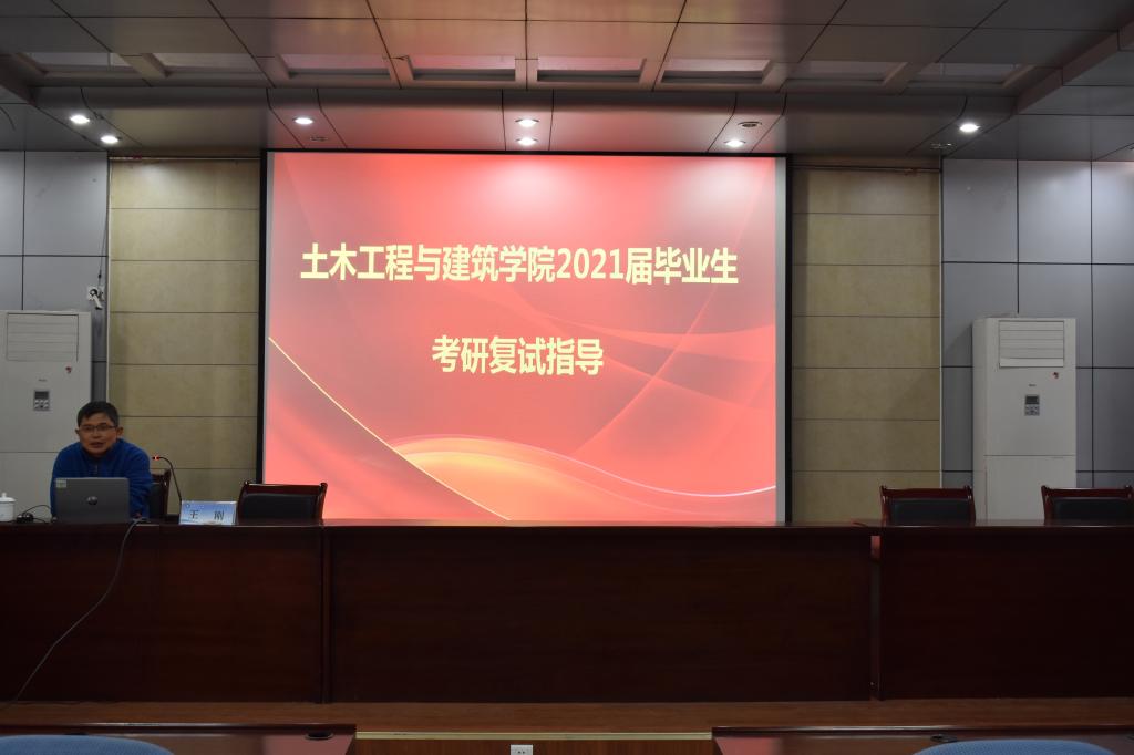 为进一步帮助考研学子做好研究生复试、调剂准备,土建学院于3月24日下午在土建楼219开展了2021届毕业生考研复试指导。本次指导由副院长王刚主持并讲解,同时邀请了2020届顺利考取名校的毕业生进行线上交流经验答疑。