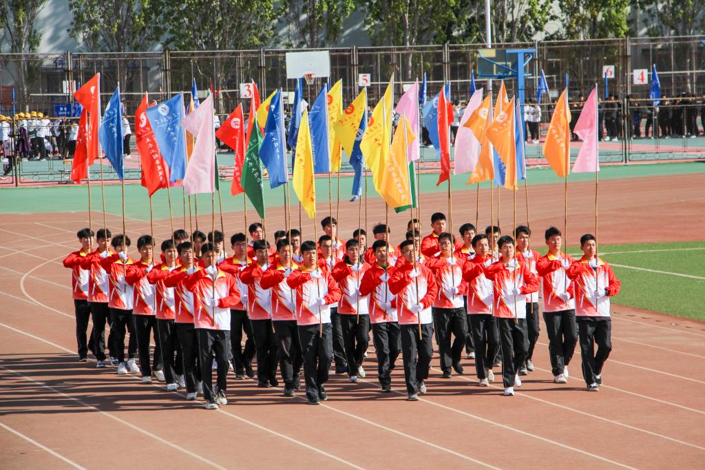 一声嘹亮的口号划破会场的宁静,国旗护卫队迈着铿锵有力的步伐,昂首阔步前来;彩旗队紧随其后,一展青春风采;各班级运动员代表方队着装统一,步伐整齐,口号嘹亮,展现班级魅力。待各方队就位后,学工办主任朱统汉发表开幕致辞并向运动员提出三点希望。在运动员代表刘云龙与裁判员代表卢薪羽郑重宣誓后,高静宣布beat365官方网站2021年“中化学交建杯”春季田径运动会正式开始。
