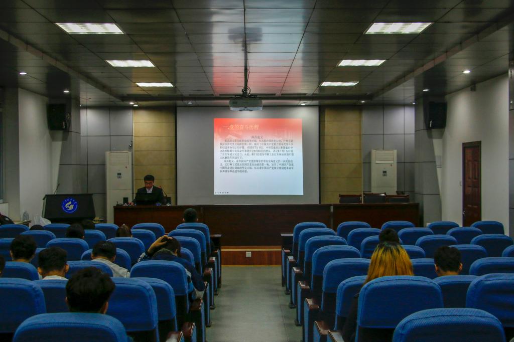 焦相团从“党的奋斗历程”“伟大的共产党员”“党员的责任”“党史的启示”以及“大学生学习党史”五个专题进行讲解。在每个专题的讲解中,焦相团通过以时间轴展示历史事件的方式,带领学生回顾党的诞生历程与不断发展的过程,引领学生领略在共产党带领下中国这100年的风云巨变。焦相团还详细讲述了党员应承担的责任以及大学生学习党史的必要性,使聆听讲座的同学们的思想得到了洗礼与升华。最后焦相团倡议同学们以党员的标准要求自己,明确党员的责任与义务,先在思想上入党,以实际行动向党组织靠拢。