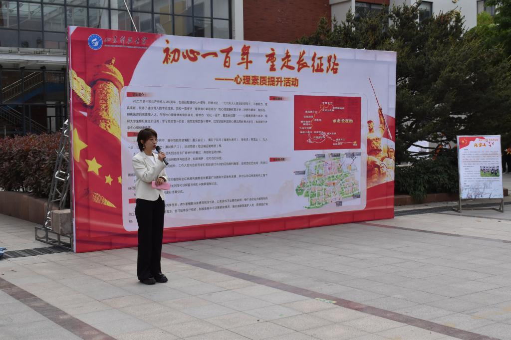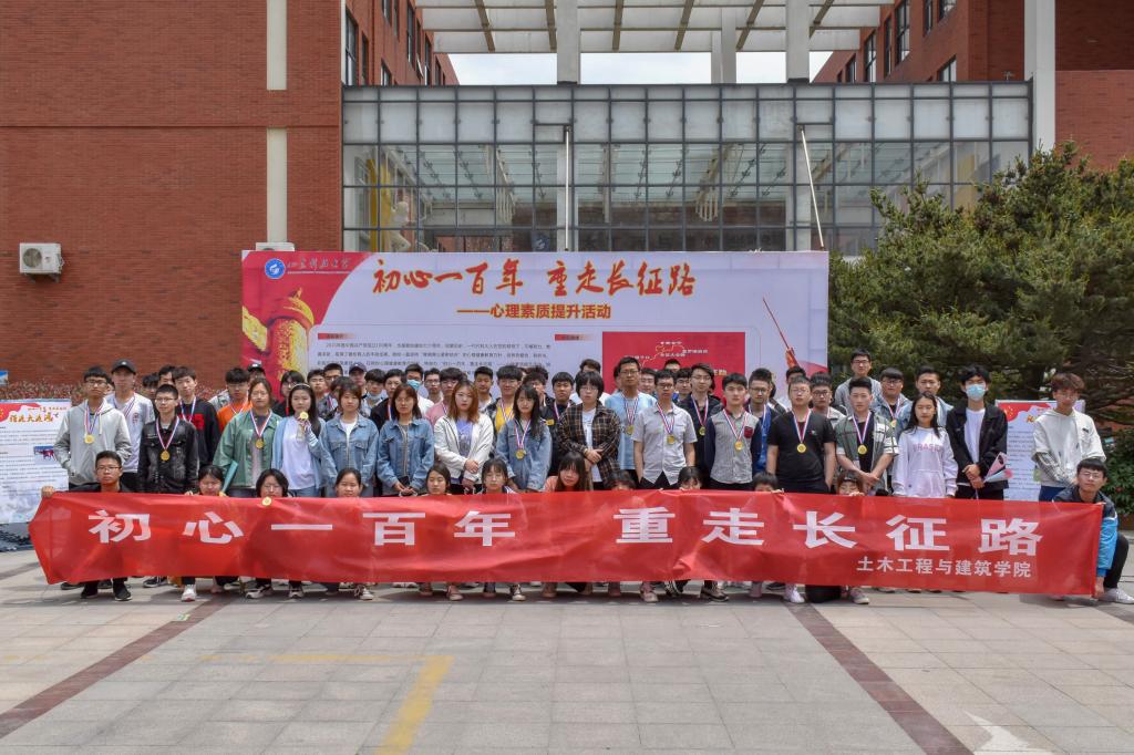 为迎接建党百年华诞,重温百年奋斗史诗,进一步追寻长征记忆,弘扬长征精神,增强学生的自我心理保健意识,5月9日上午,由学生处心理健康中心主办、土建学院学工办承办的“初心一百年,重走长征路”心理素质拓展活动在J15西门广场开展,心理健康中心乔杨、能源学院岳淑玲、土建学院鲍娜娜及各学院百余名学生参加了本次活动。